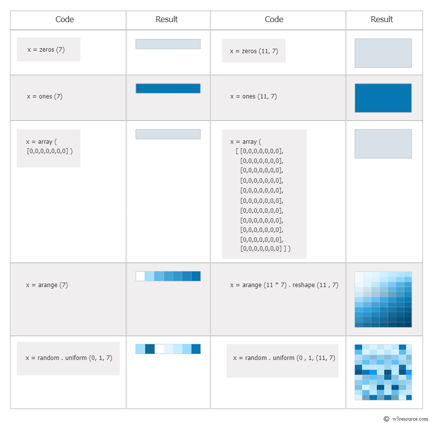 zeros_like() | Ritorna un nuovo array di 0 con stessi dimensione e tipo di un dato array. | numpy.zeros_like(a[, dtype, order, subok]) |