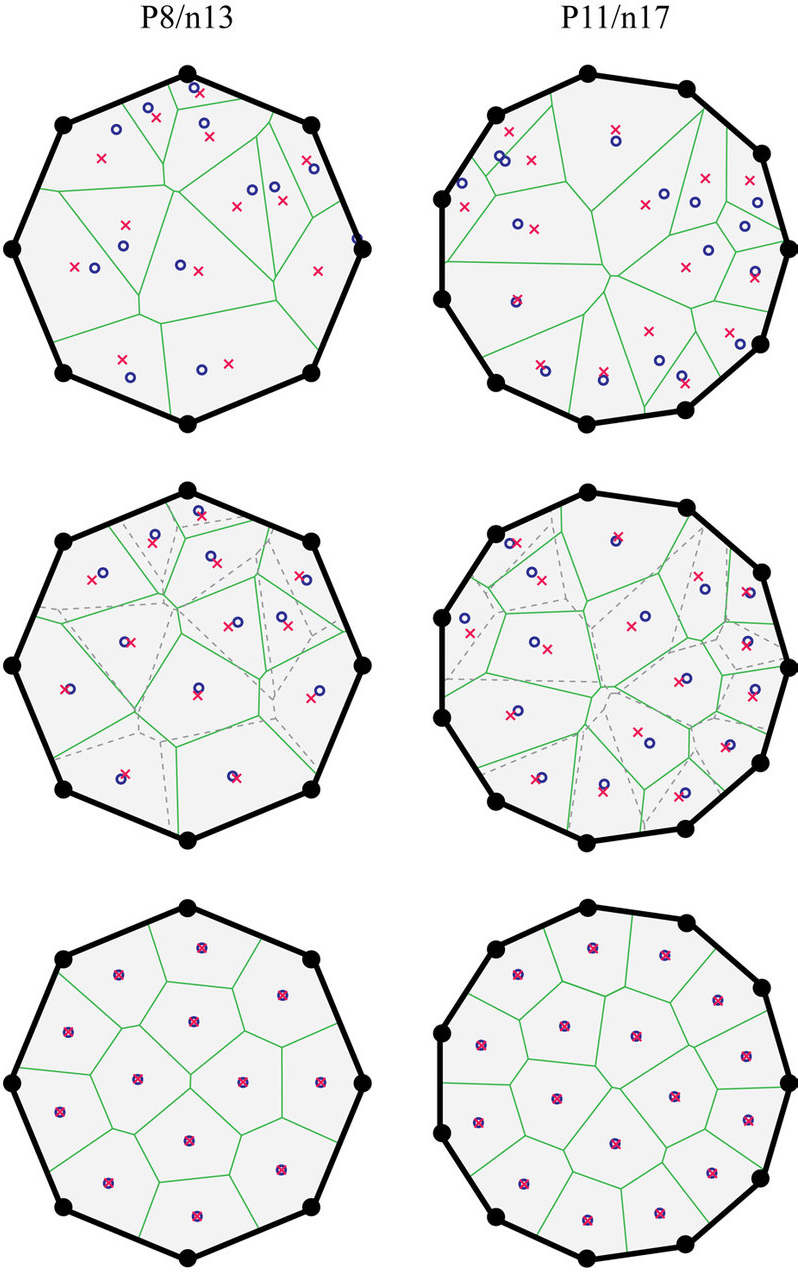 - Ogni sito viene quindi spostato dal baricentro della sua cella di Voroni.