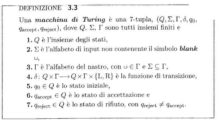 - Riceve l’input su n celle più a sinistra del nastro, mentre il resto del nastro è vuoto.