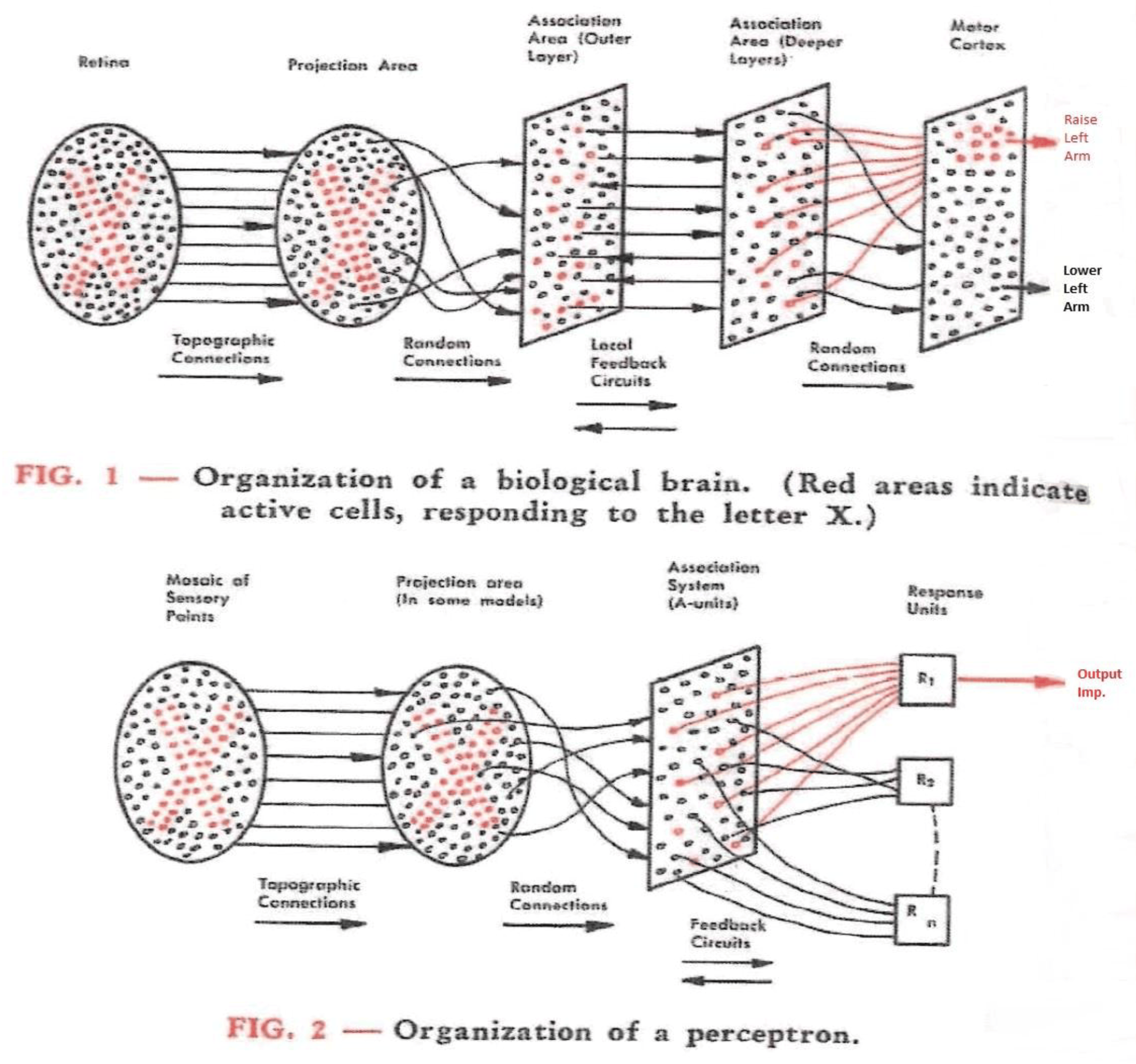 Il percettrone di Rosenblatt si differenzia dei neuroni artificiali moderni: