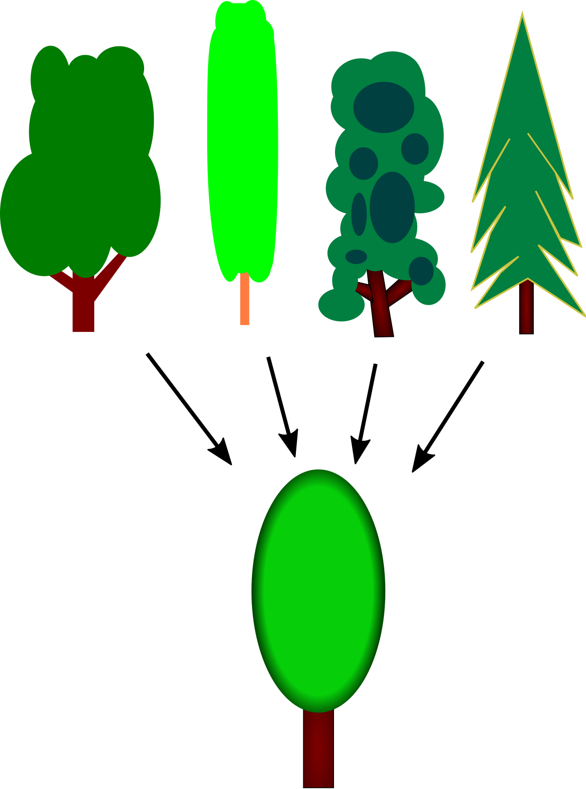 - Il livello subordinato: i cui membri condividono le caratteristiche del livello base ma se ne differenziano alcuni attributi più specifici (passero, aquila).